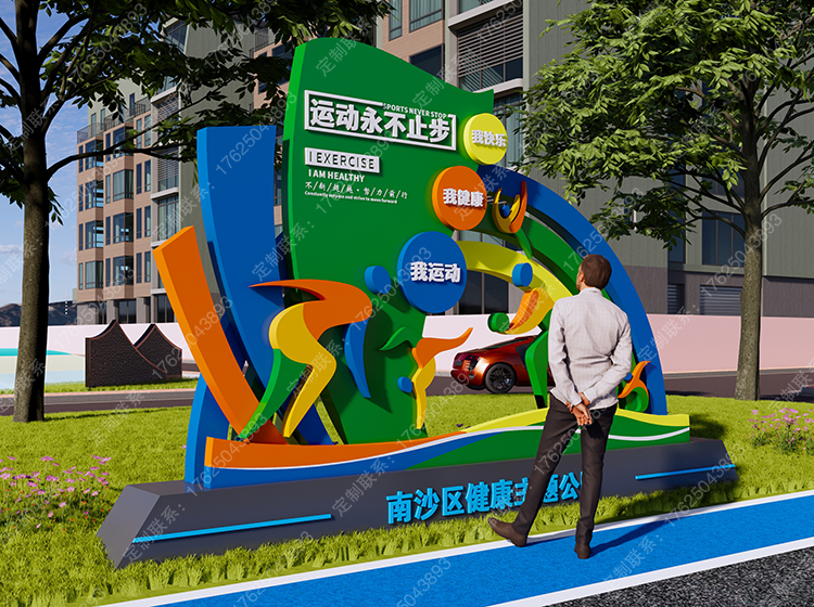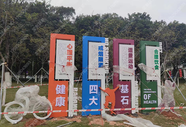 健康運(yùn)動(dòng)宣傳標(biāo)識(shí)標(biāo)牌健身步道廣告牌四大基石景觀(guān)小品宣傳牌
