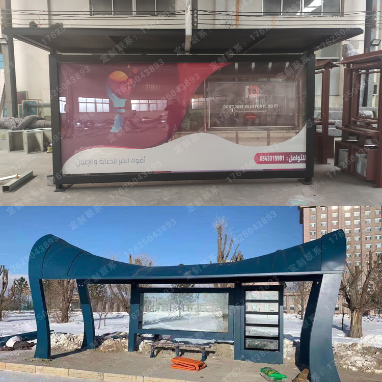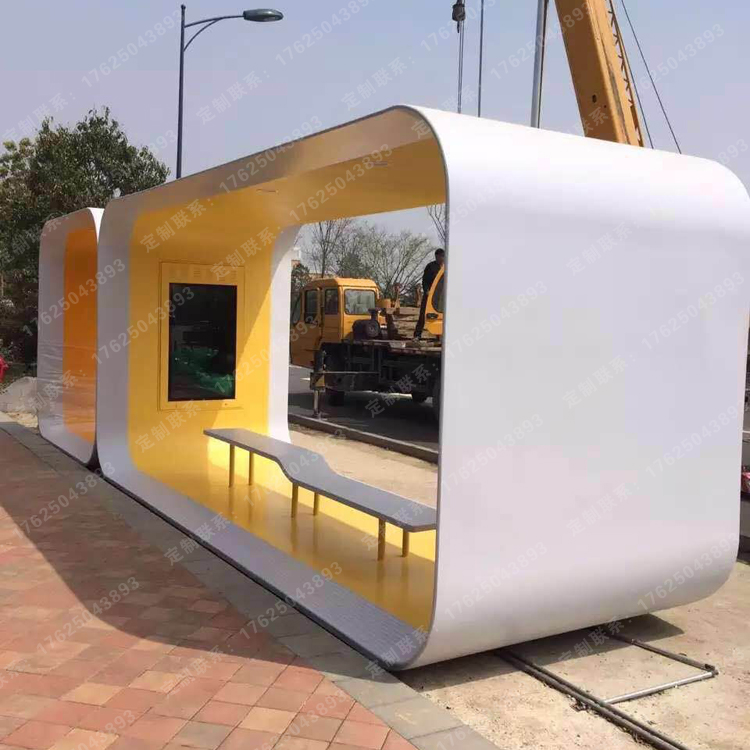 一些個性化設(shè)計的公交候車亭通常采用整體設(shè)計(例如天花板和立柱是一個整體),部件通常需要由工廠定制。